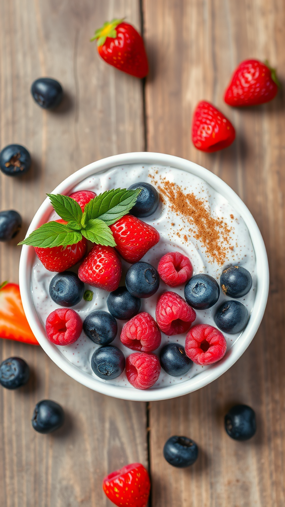 - Serve: Once set, give the pudding a good stir. Spoon it into serving bowls or jars, and top with mixed berries and a sprinkle of cinnamon.